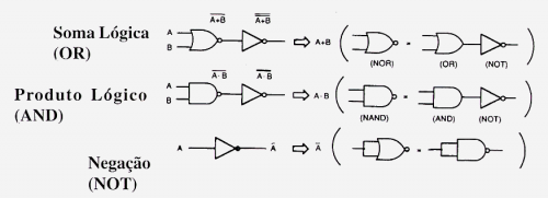 (A + B)’ = A’ * B’ ou A + B = (A’ + B’)’