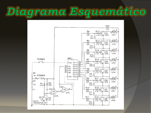 Quando o programa está “rodando”, cubra e descubra o fototransistor com a ponta dos seus dedos por um momento. Como você fez um flag de verificação variar, os LEDs começam a piscar um por um de L1 a L8.